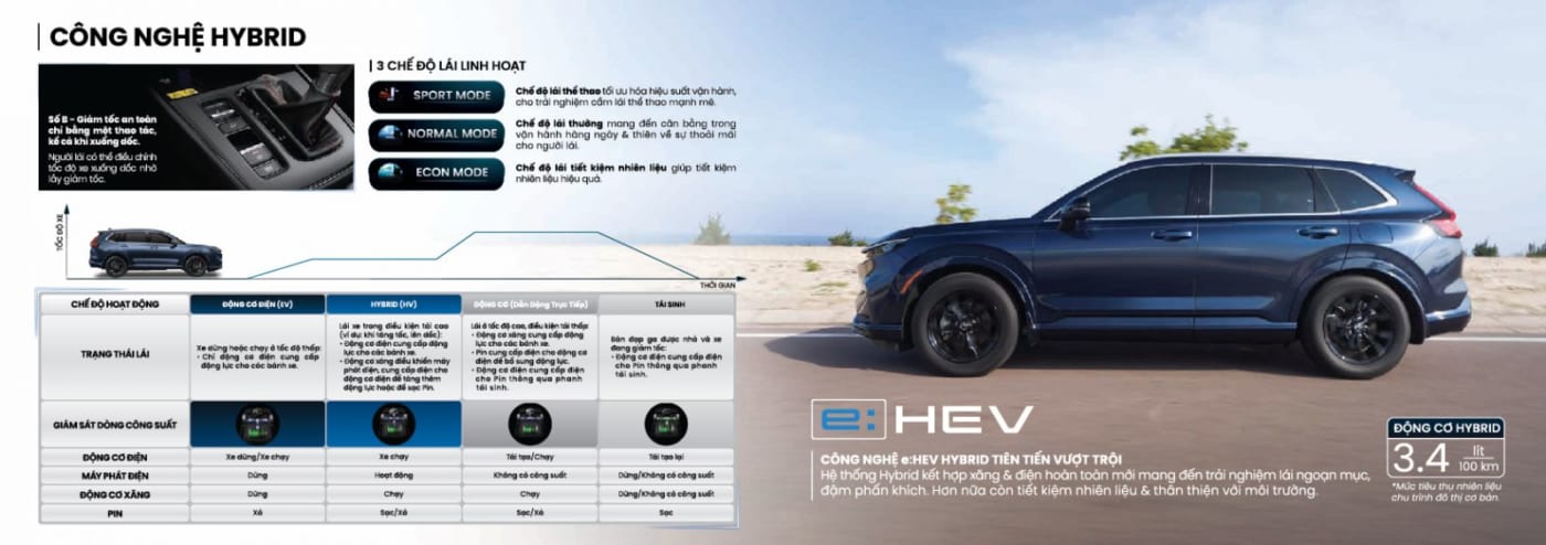 Để giảm khí thải Carbon, nhu cầu chuyển từ nhiên liệu hóa thạch sang năng lượng tái tạo hoặc năng lượng “xanh” là điều cần thiết và cần có lộ trình phù hợp. Hiện tại, trong giai đoạn chuyển đổi, HEV là giải pháp hiệu quả cho vấn đề môi trường, phù hợp với bối cảnh thị trường tại Việt Nam vì HEV không yêu cầu về hệ thống trạm sạc, không làm thay đổi thói quen của người tiêu dùng. Ngày 25/10/2023 vừa qua, Honda ra mắt dòng xe Hybrid tại Việt Nam – CR-V e:HEV RS chính là là bước đầu tiên trên hành trình Honda Việt Nam hiện thực hóa cam kết theo mục tiêu chung của Chính phủ Việt Nam và Honda Motor: Trung hòa Carbon vào năm 2050.