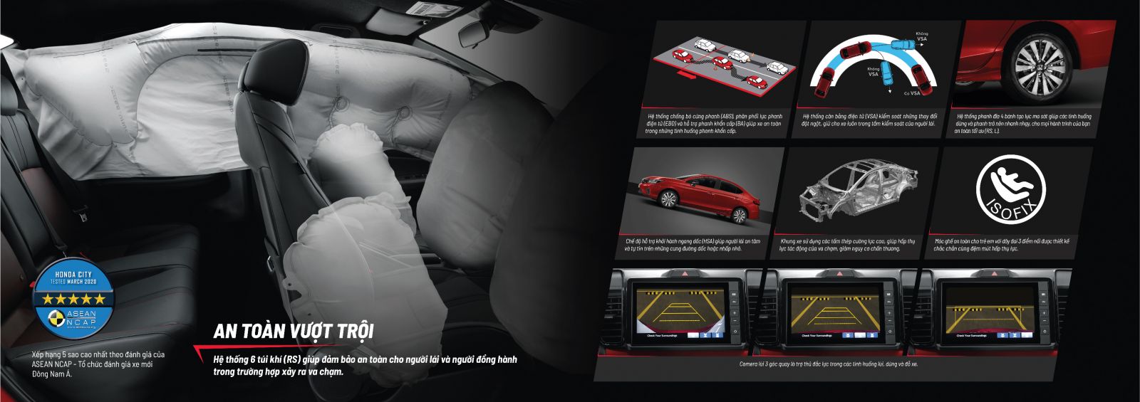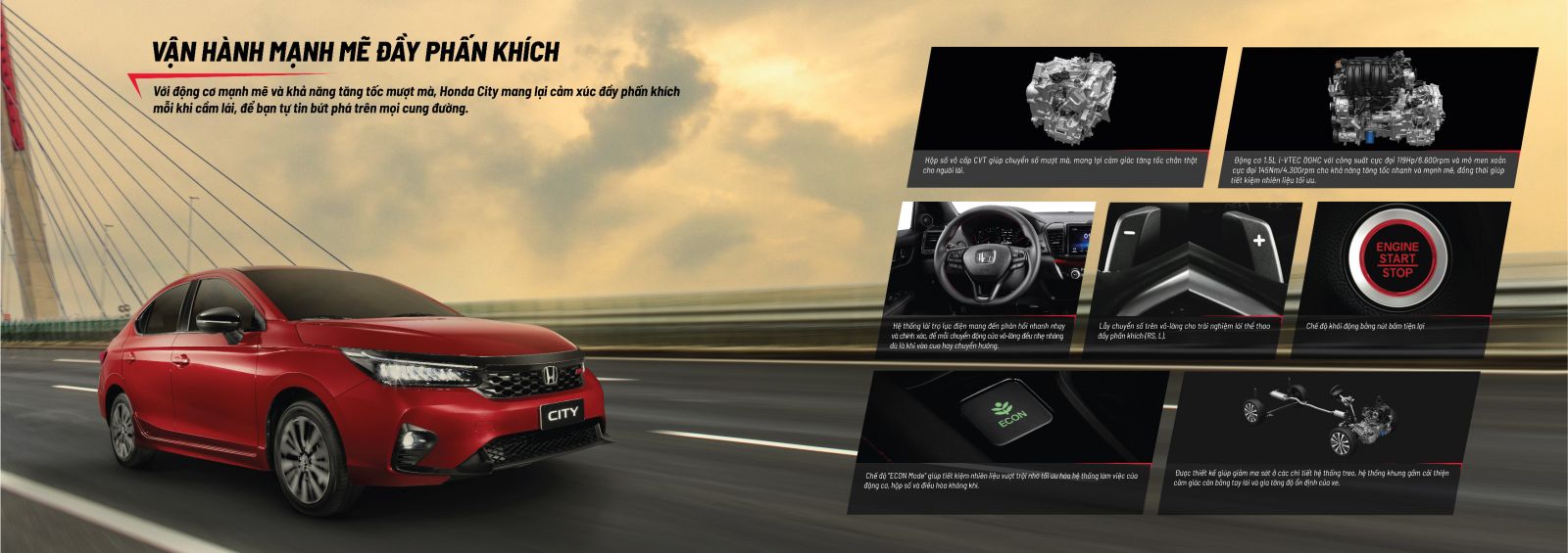 Được phát triển dựa trên ý tưởng mang đến một mẫu xe sedan “Thể thao hơn, An toàn hơn”, Honda City mới không chỉ đáp ứng nhu cầu đi lại cơ bản mà còn đem lại sự an tâm khi trải nghiệm cho khách hàng với những thay đổi đáng giá trong phân khúc hạng B: