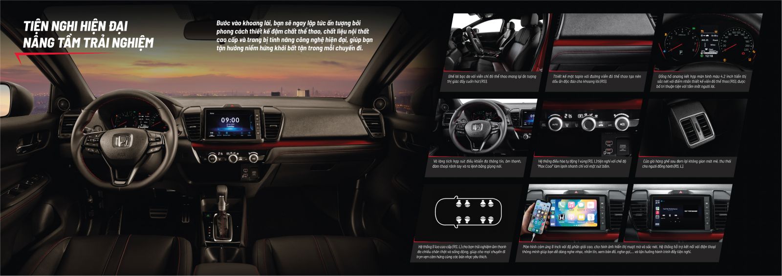 – Tiện nghi hiện đại với hệ thống kết nối viễn thông ưu việt Honda CONNECT được trang bị trên phiên bản RS.