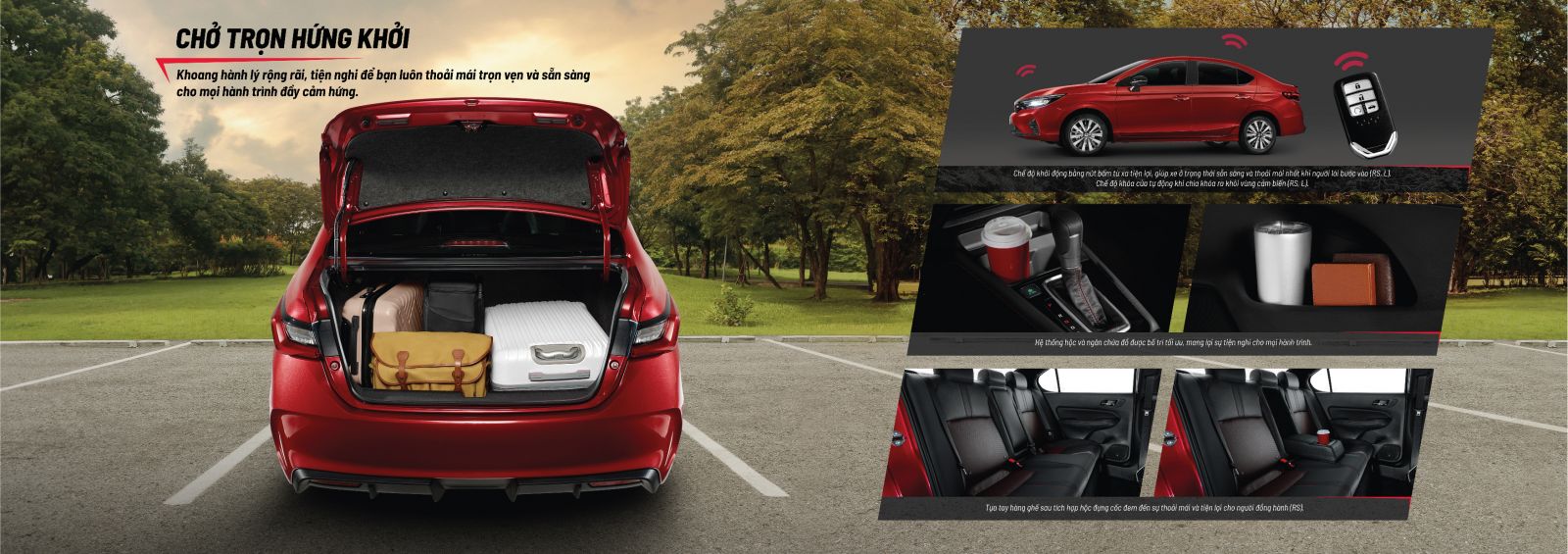 – An toàn vượt trội hơn với hàng loạt trang bị bổ sung như Hệ thống công nghệ hỗ trợ lái xe an toàn tiên tiến Honda SENSING trên tất cả các phiên bản, phanh đĩa (RS, L).